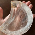 ブラジル産水晶の月型のお皿と、ローズクオーツのさざれがセットになった贅沢なアイテムです。厚みがあり、かなり重厚感があります。シュワシュワ感が可愛い結晶、所々に黄いヘマタイトが混入しています。キラキラとした姿には、心が洗われるような美しさを感じます。ローズクオーツのさざれは、水晶皿に散りばめることで、ロマンチックで ガーリーな雰囲気を演出できます。ローズクオーツは恋愛運をアップさせる効果などがあり、それがさらに増幅されるような気がします。
