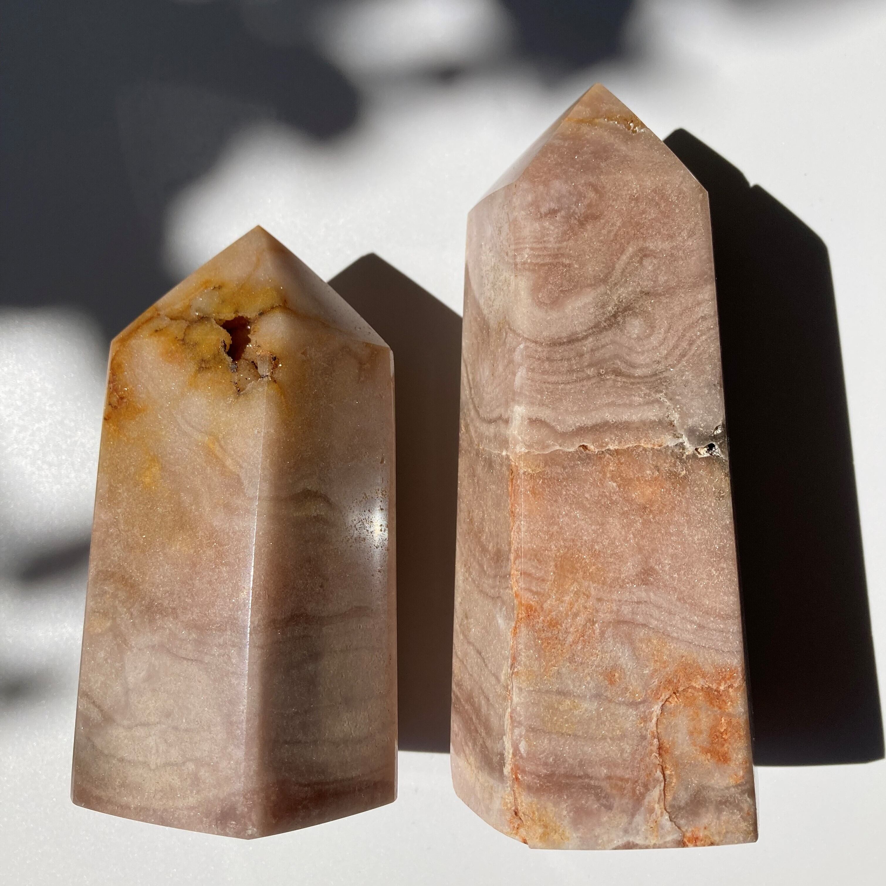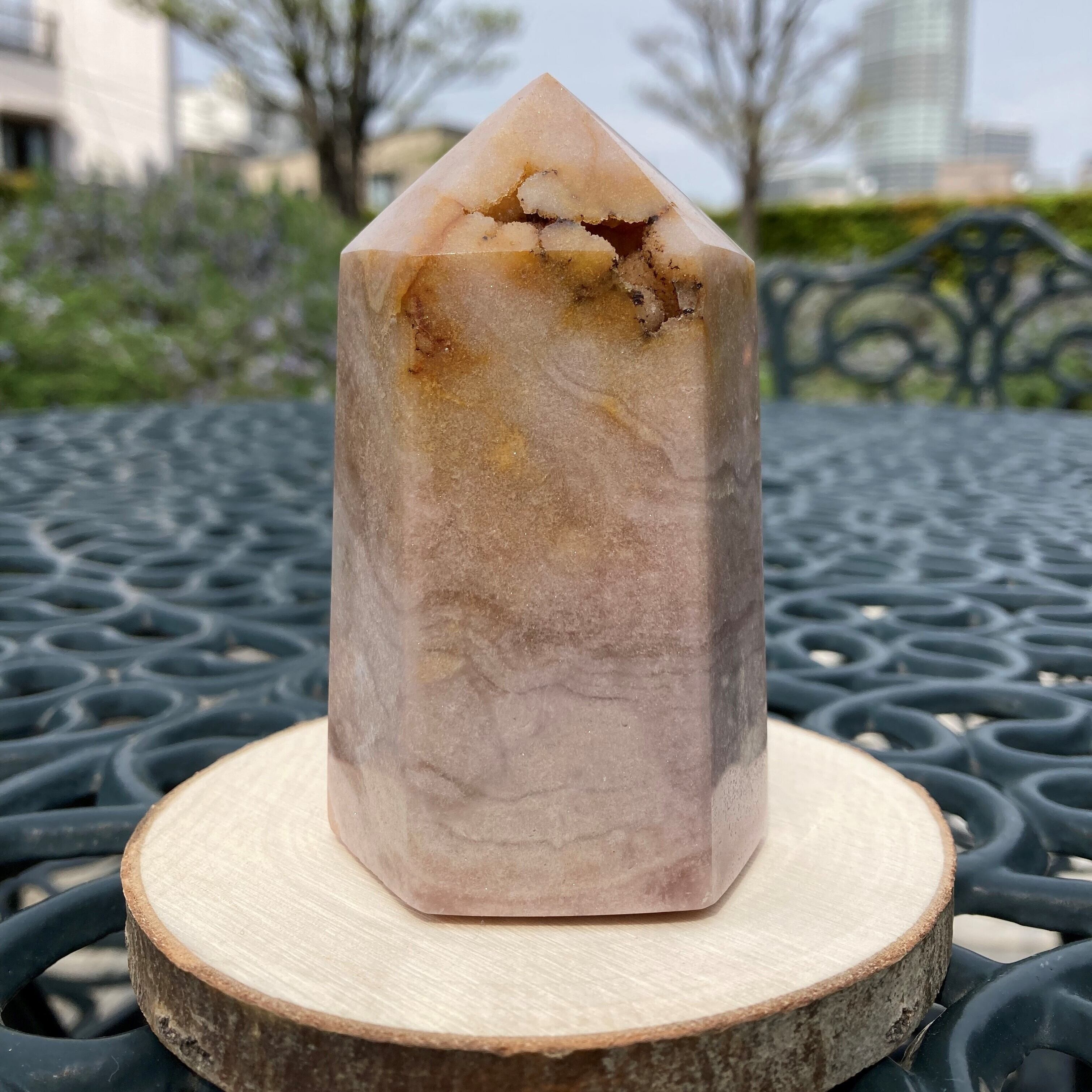 淡い優しいピンク色が美しいピンクアメジストのポリッシュポイント。ピンクアメジストは産出量が少なく希少で、天然の素材ならではの美しさをお届けします。アメジストは紫色というイメージが強いですが、この子は淡く優しいピンク。持ち主に幸運をもたらし、心身を癒してくれるとされ、お守りとしても人気です。ちょっとした贈り物や、自分へのご褒美にもぴったりです。比較的小さいドゥルジーが先端部分にあり、細かいキラキラが全体にもみられ、光に当てるととても可愛いです。この美しいピンクアメジストで、心身ともに癒される至福の時間を過ごしてみませんか?