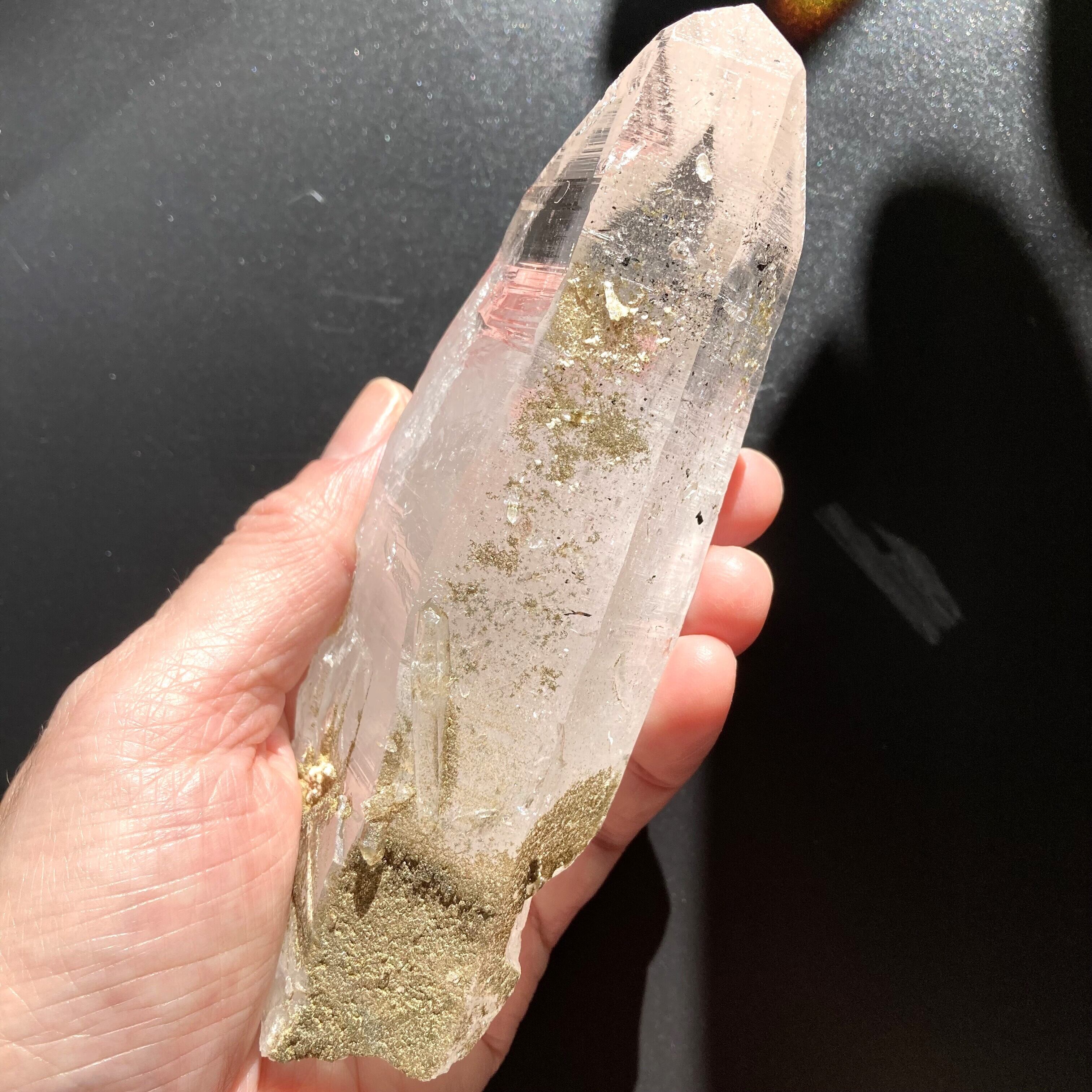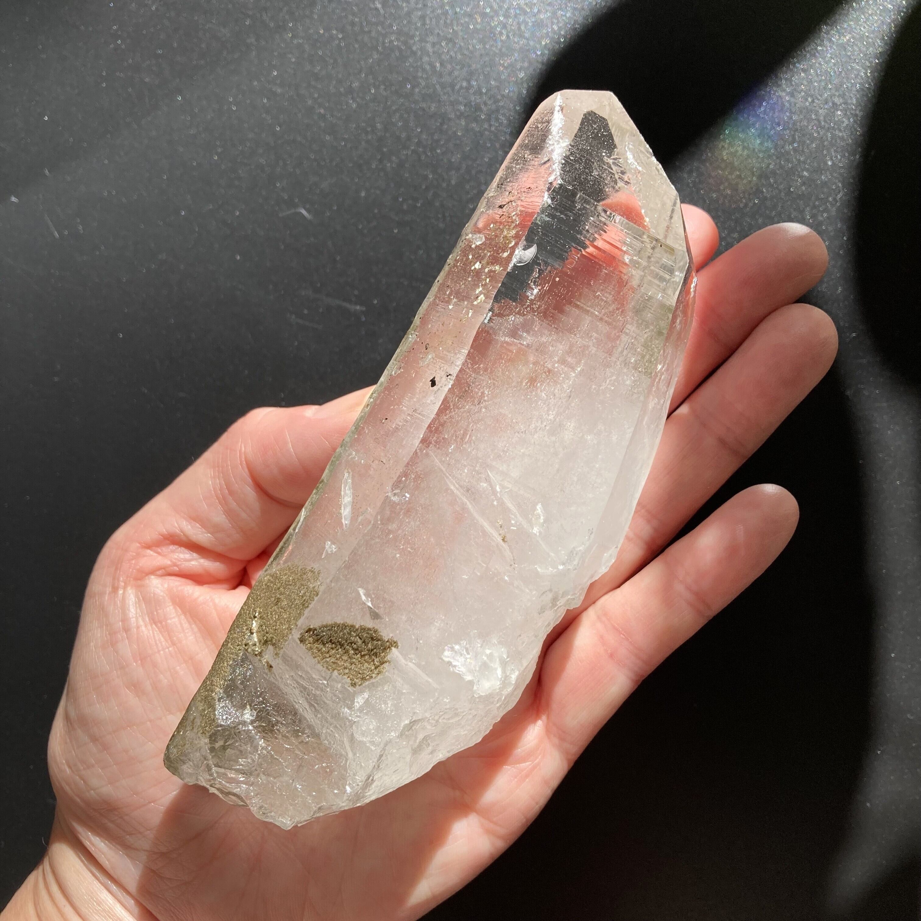 原石感あふれる美しいヒマラヤ産の水晶ポイントを入荷しました。ガネーシュヒマールで産出されたこの水晶ポイントは自然な形状で、根本部分にはクローライト(緑泥石)が緑色の砂ように付着しています。まさに典型的なヒマラヤ産水晶です。標高5000mにもなるヒマラヤ山中での採掘は非常に厳しく、機械を持ち込めない採取がゆえに、流通量が少ない水晶ポイントです。存在感のある水晶をお求めのあなた様へおすすめです。