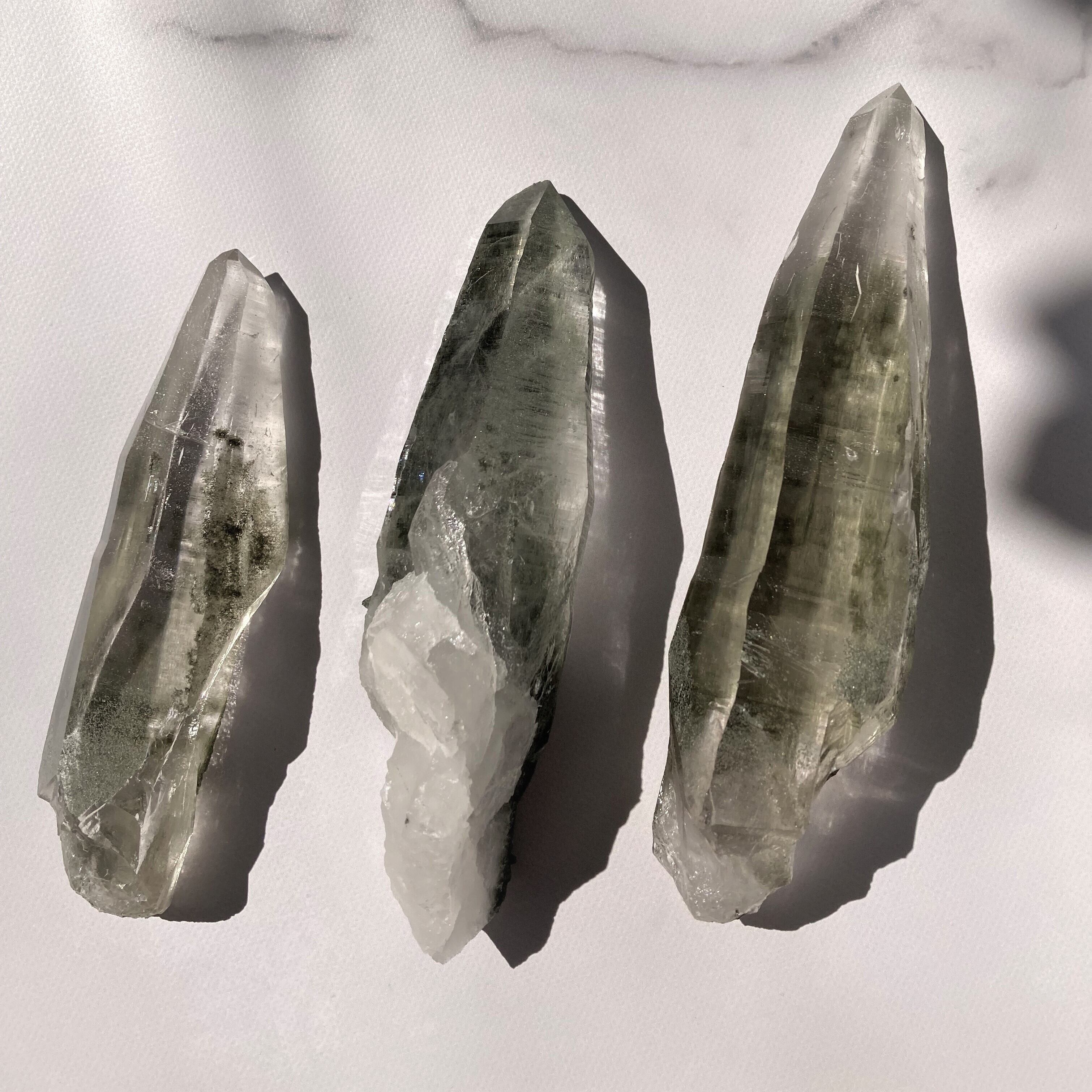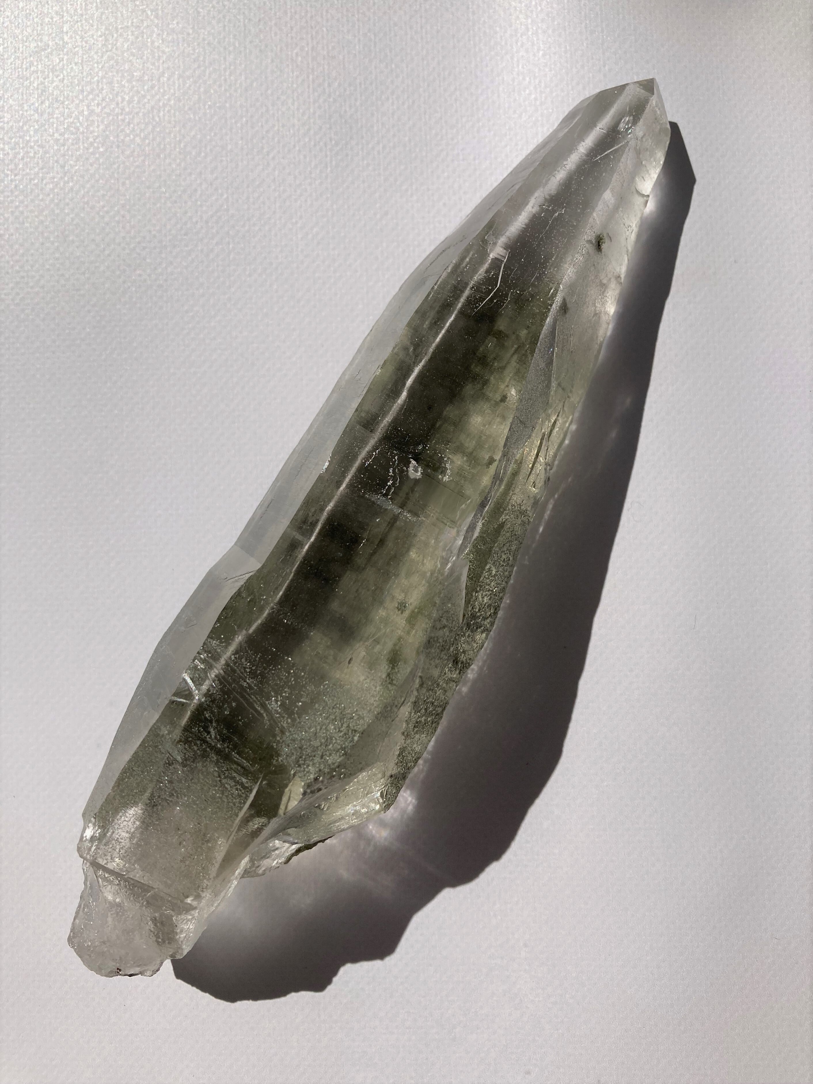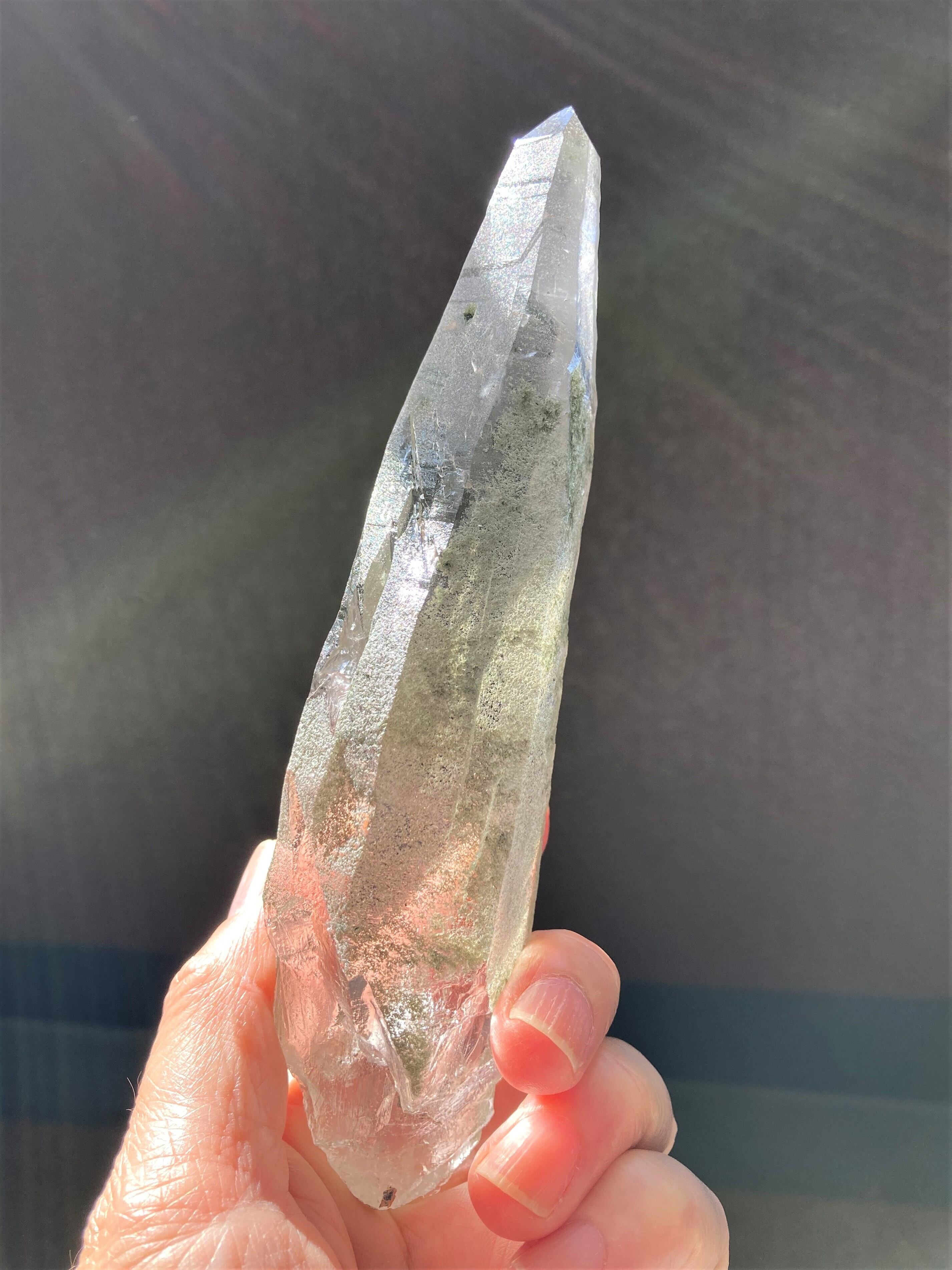 強い波動と美しさを兼ね備えた、希少価値の高いネパール・ガネーシュヒマール産の水晶ポイントを入荷しました。神聖なる水晶には、自己を見つめ、心を浄化する力があります。ガネーシュヒマールで産出されたこの水晶ポイントは自然な形状で、また、クローライト(緑泥石)と呼ばれる緑色の包有物にもヒーリングパワーが宿っており、癒やしと浄化のエネルギーを体感できます。側面部分にはクローライト(緑泥石)が緑色の砂のように付着しており、かつ236gの重量感が強いヒーリングパワーを秘めていそうな一品です。標高5000mにもなるヒマラヤ山中での採掘は非常に厳しく、機械を持ち込めない採取がゆえに、流通量が少ない水晶ポイントです。存在感のある水晶をお求めのあなた様へおすすめです。