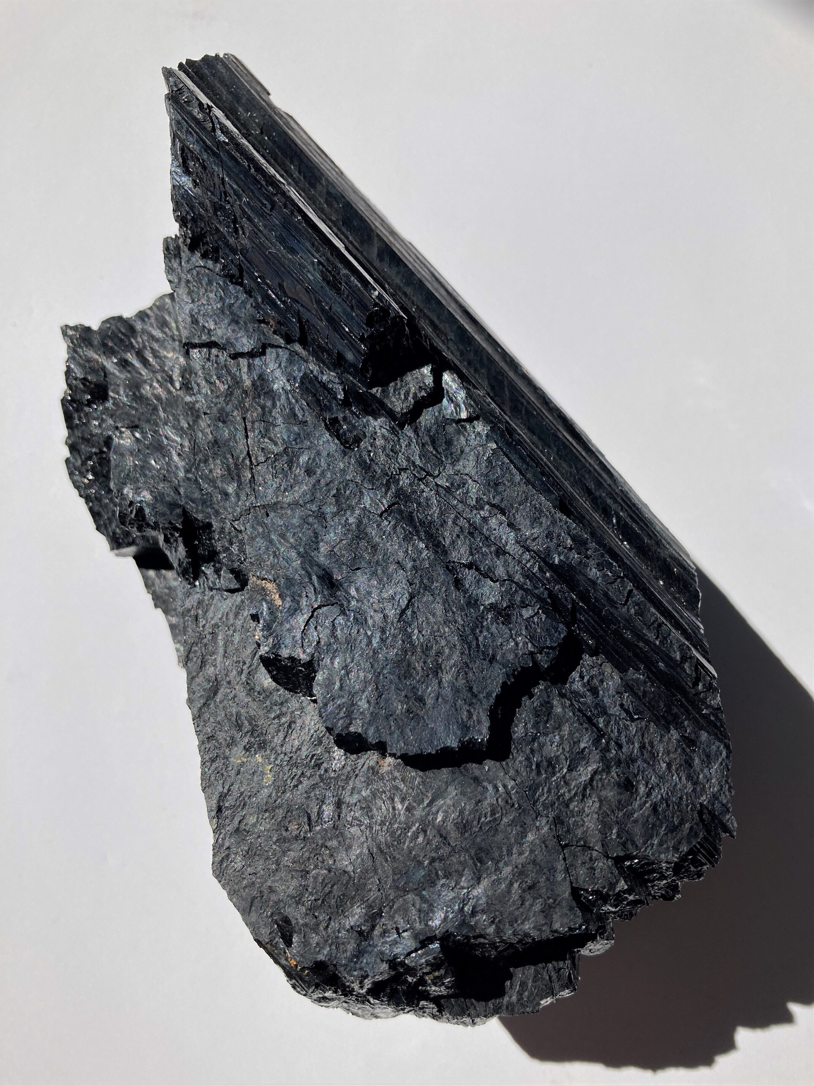 当店で初めて紹介するブラックトルマリンです。ゴツゴツした迫力のある形状、これぞブラックトルマリンと思わせる形状です。ピンクや紫と違って、決して癒される色合いではありませんが、電磁波から守ってくれる石としてブラックトルマリンを側に置くのをおすすめします。携帯電話やパソコン、テレビなど身の回りは電磁波だらけです。お部屋に置いてお部屋の空間を電磁波や良くない波動から守ってもらうにはとても頼りになる一品です。更にブラックトルマリンには厄除けや邪気払いの効果があると言われており、心身共に安定した状態を保つのに役立つとされています。このブラックトルマリンで身を守り、お部屋にパワフルなエネルギーを加えてみては如何ですか。