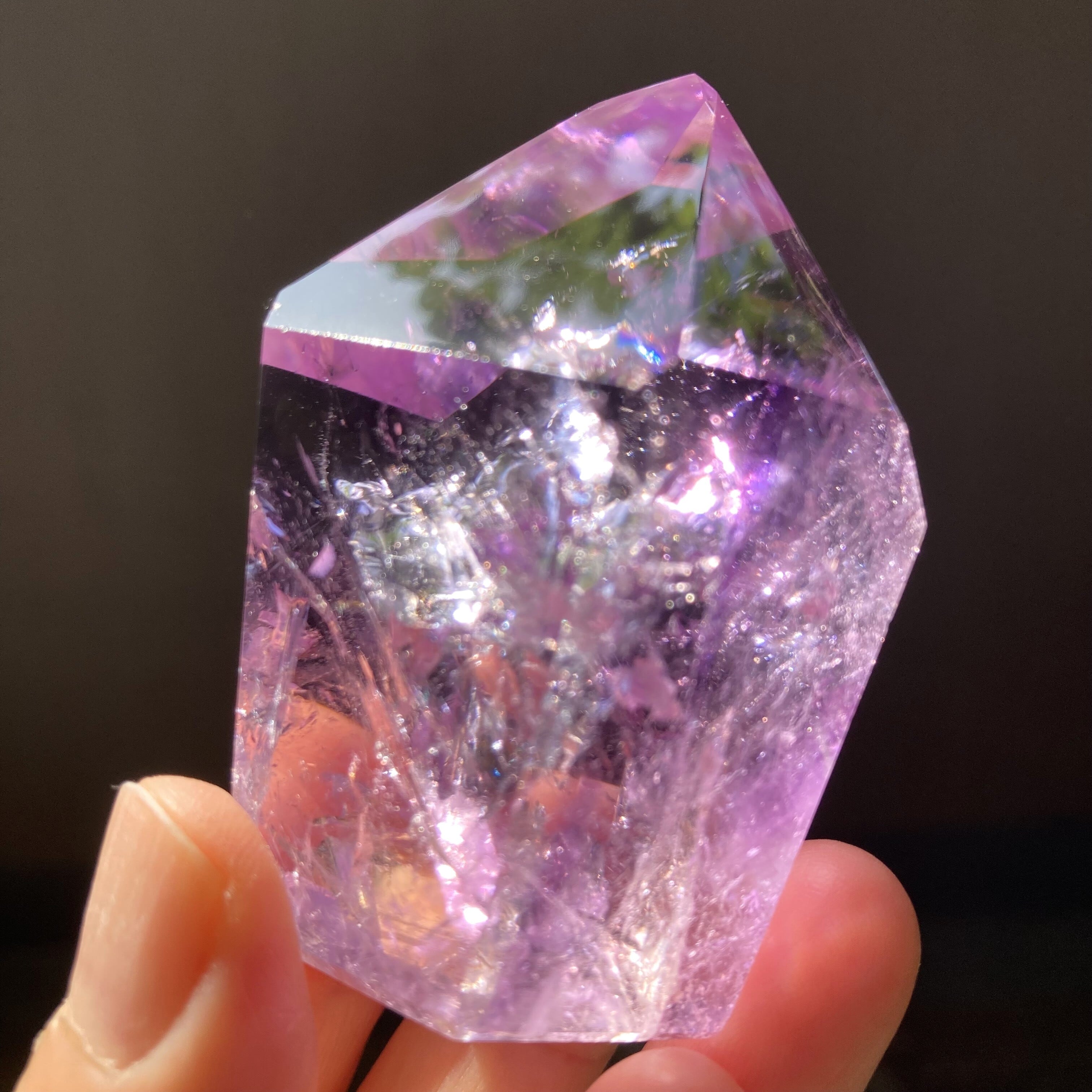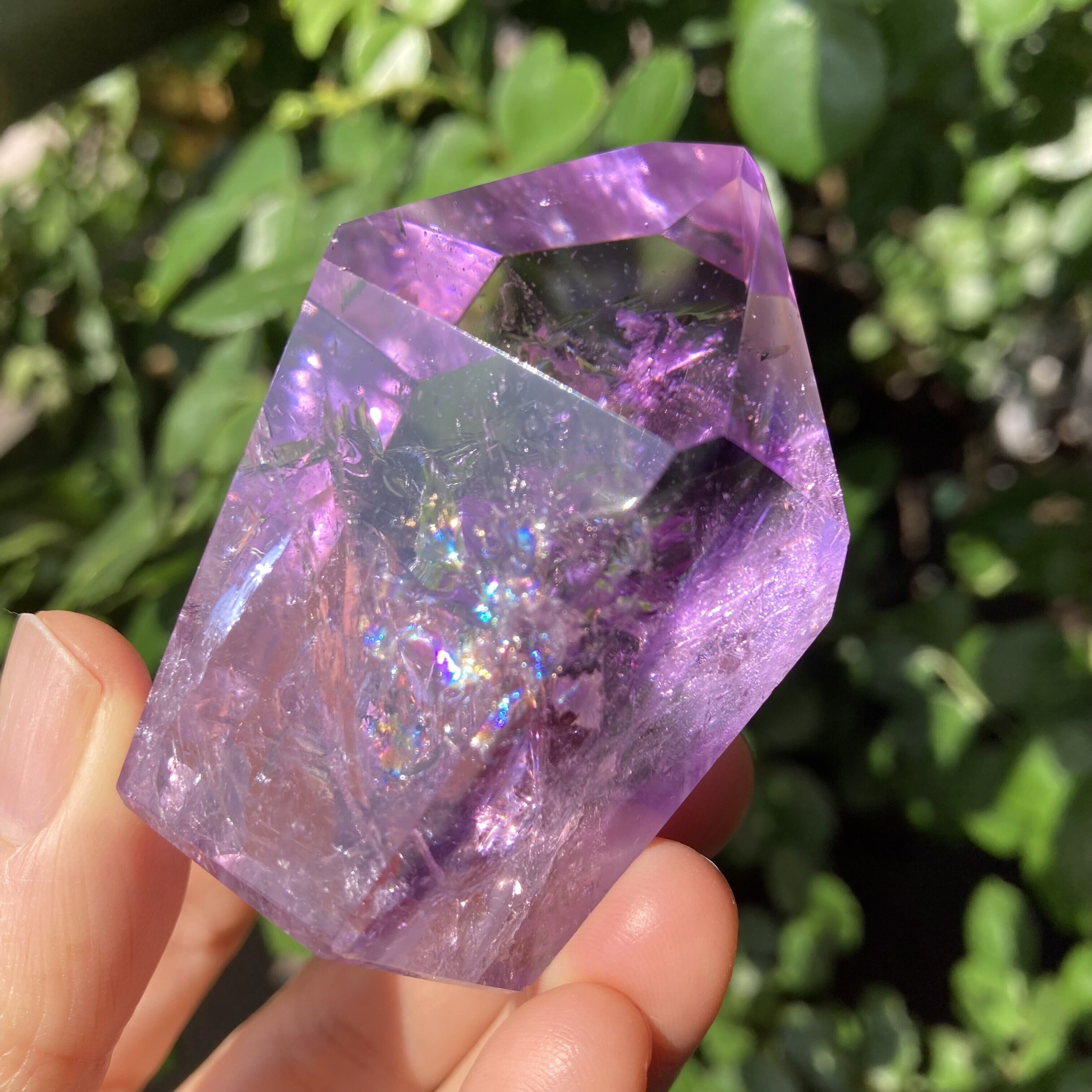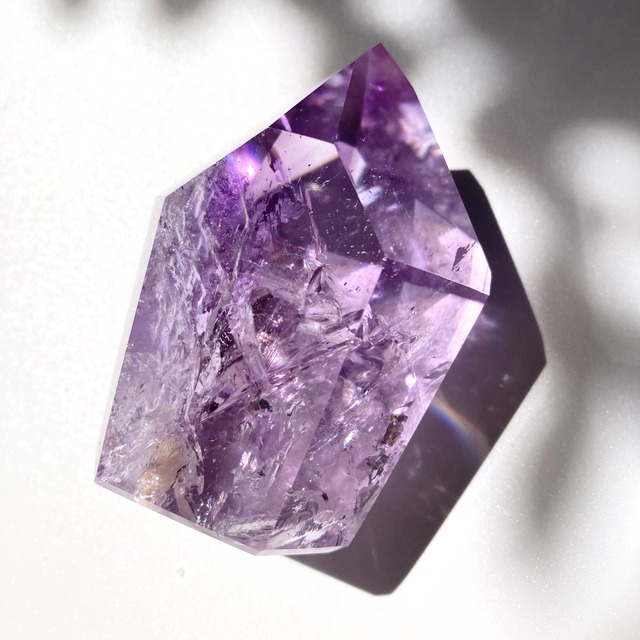 美しい紫色が魅力のボリビア産・アメジストポリッシュポイントです。写真でもはっきりと確認できるレインボーが素晴らしく、手に持つと静寂な気持ちと同時にボリビアの土地のエネルギーを感じられる一品です。程よい大きさなので、机の周りや、インテリアとしてお部屋に飾ることができます。アメジストは、癒しやリラックス効果があると言われています。実際に手に取り、美しさと癒しの力を感じてみてください。心安らぐ瞬間を体験できること間違いなしです。