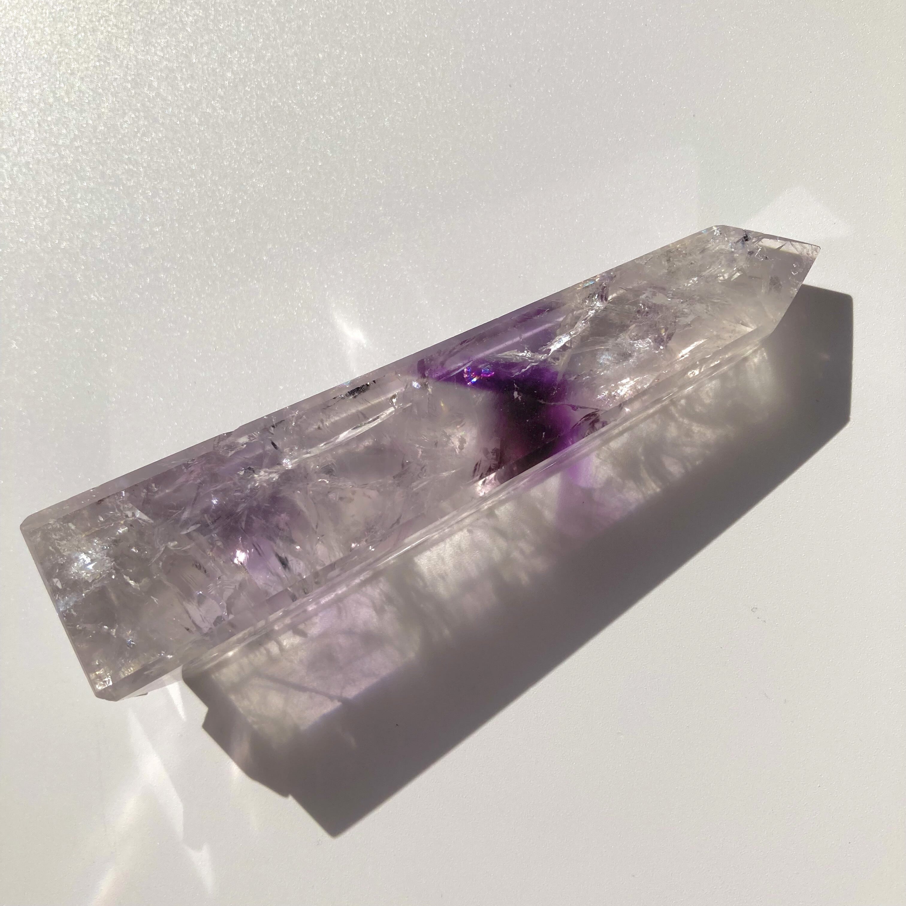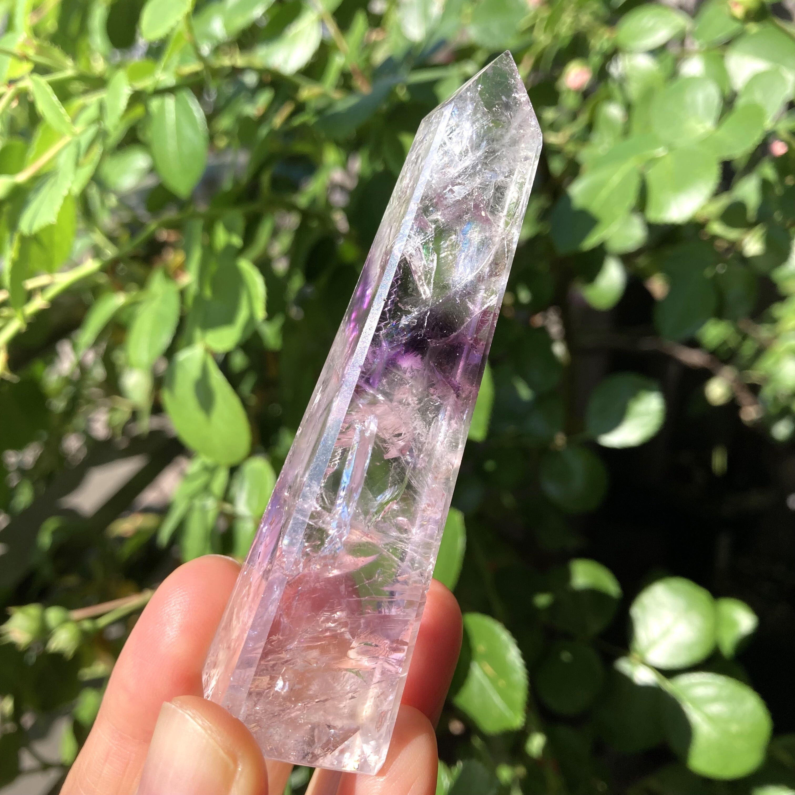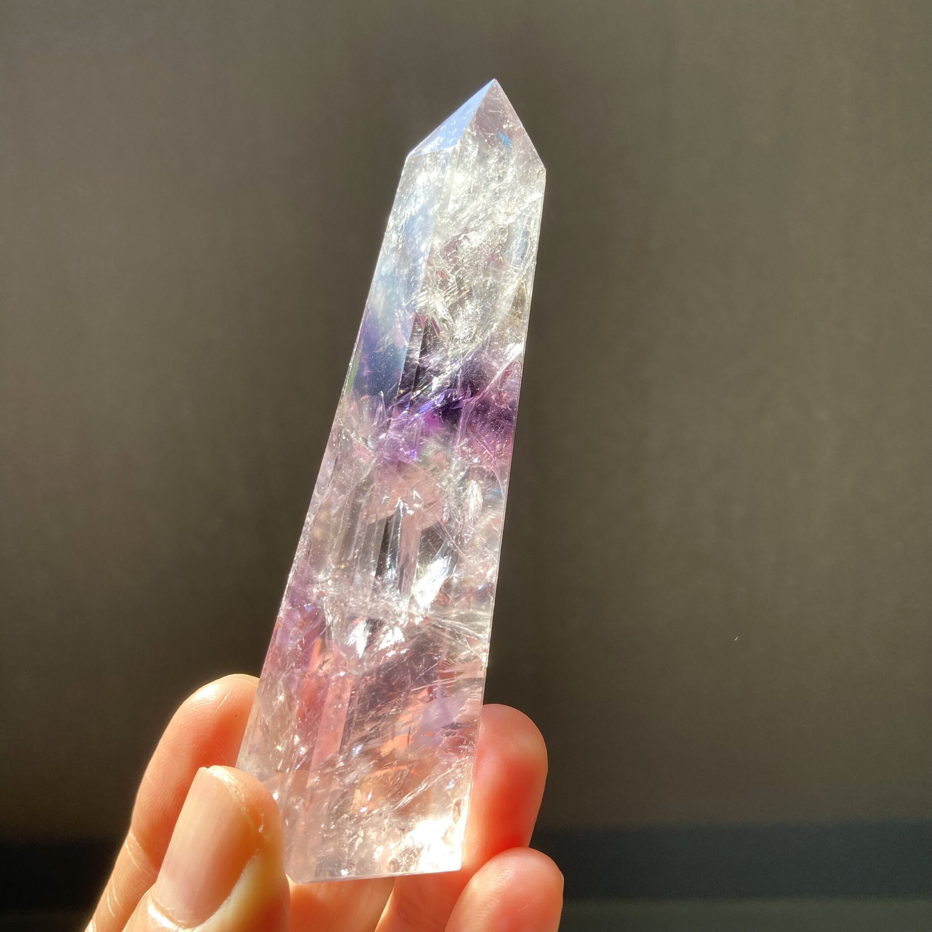 当店で初めて紹介するファントム アメジスト。透明度が高いハイクォリティなアメジストをオベリスク型に研磨しています。中に見える濃い紫部分がファントムです。