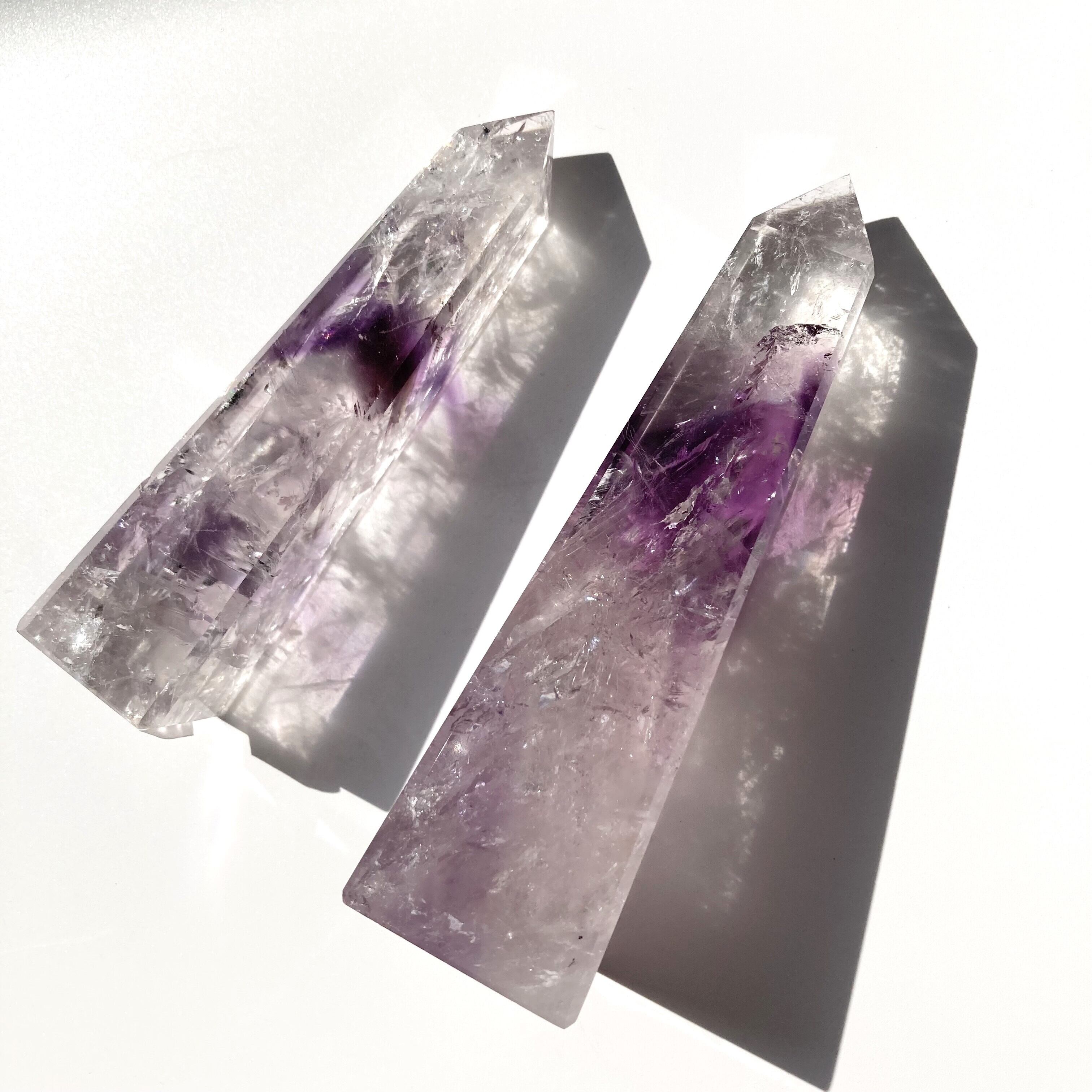 当店で初めて紹介するファントム アメジスト。透明度が高いハイクォリティなアメジストをオベリスク型に研磨しています。中に見える濃い紫部分がファントムです。