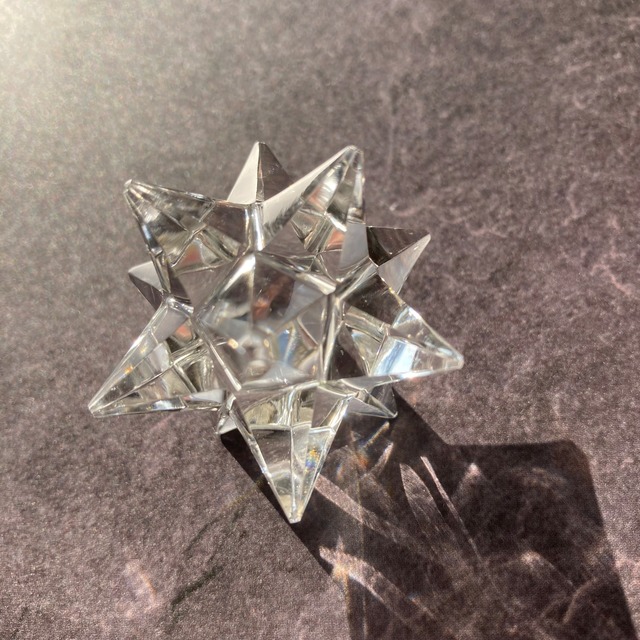 ヒマラヤ山脈で採掘された高品質な水晶のアステロイドです。アステロイドとは「星のような形」という意味を持ちます。この水晶を手に取ると、夜空に浮かぶ星があなた様に飛んでいくような、とても不思議な感覚に陥るかもしれません。アステロイドは、小星型12面体で五芒星(ペンダグラム)と六芒星(ヘキサグラム)が一体となり12個の頂点をがあり、見る角度によって、5個の頂点を持つ五芒星に見えたり、6個の頂点がある六芒星にも見えたりします。六芒星(ヘキサグラム)は、特別な魔力や魔除けエネルギーを持ち、五芒星(ペンダグラム)は、精神エネルギーを強める働きがあると言われてます。そんな形が合わされて作られているアステロイドは素晴らしいエネルギーを持っている事は間違いありません。さらに最もヒーリング効果の高いガネーシュヒマール産水晶。ネパールの限られた職人にしか作ることが出来ないガネーシュヒマール産アステロイドはとても貴重です。あなた様自身のご褒美の一品としてお薦めします。