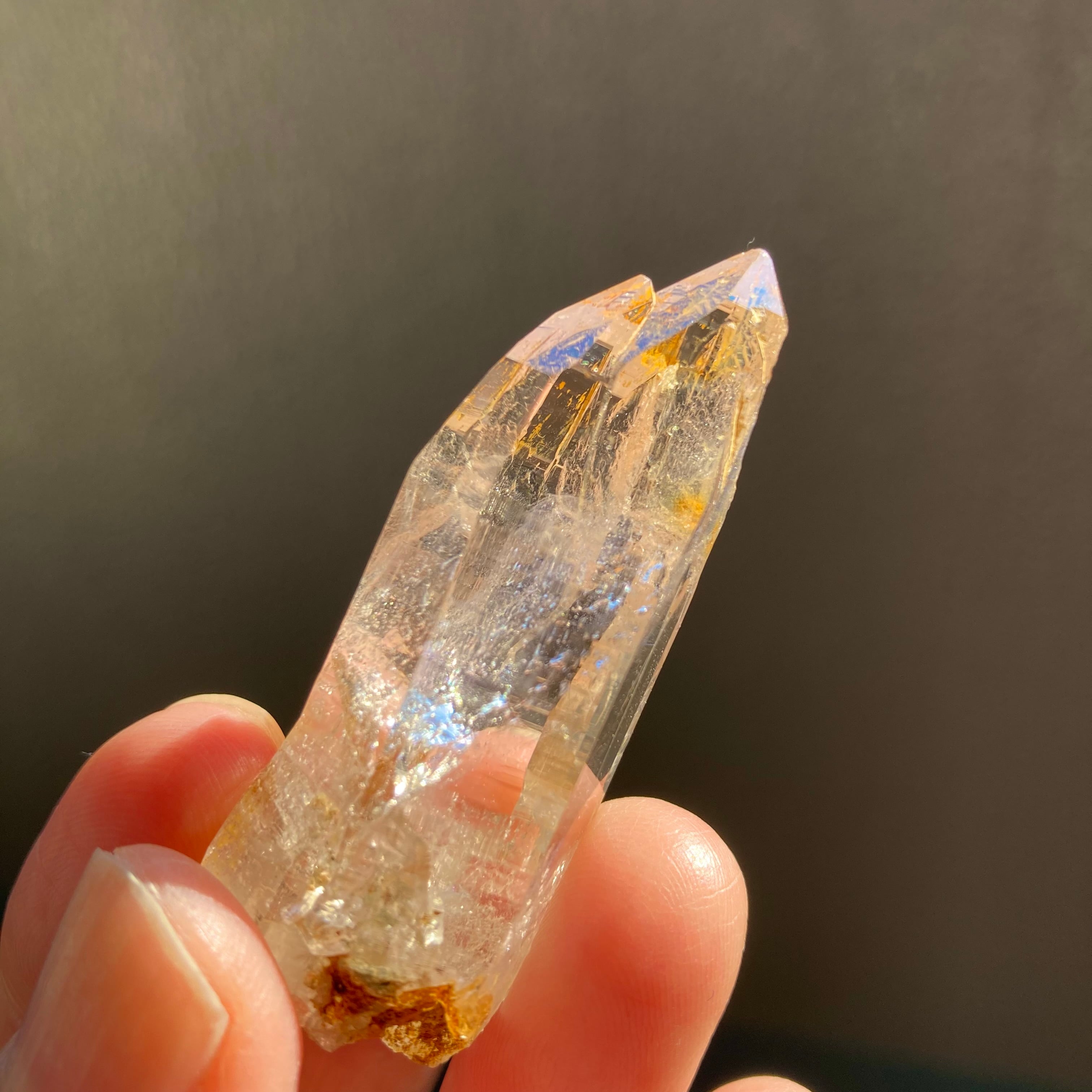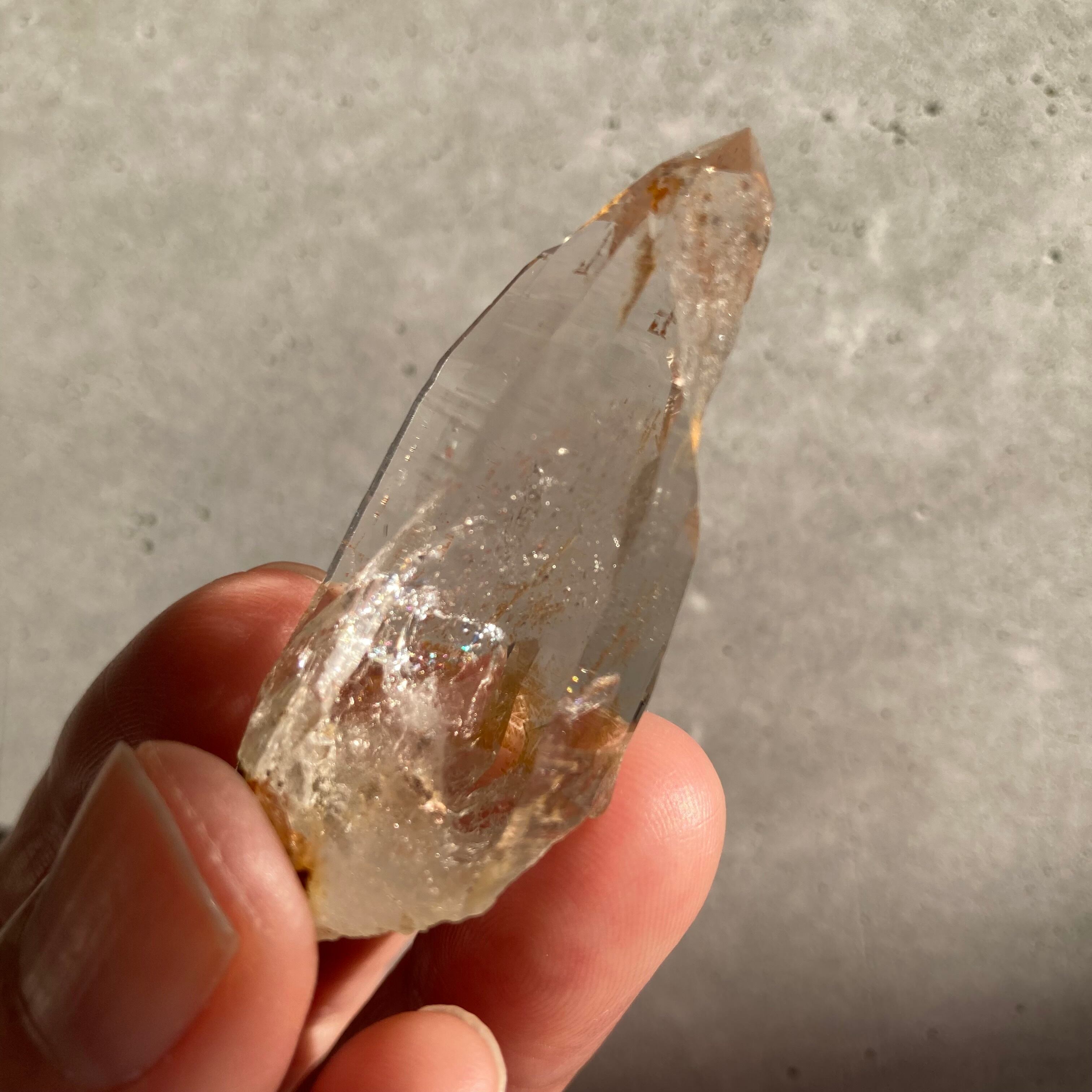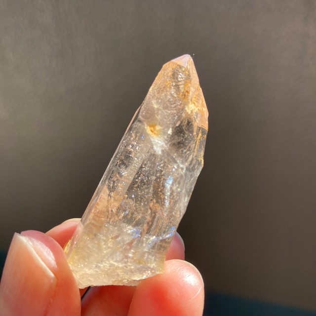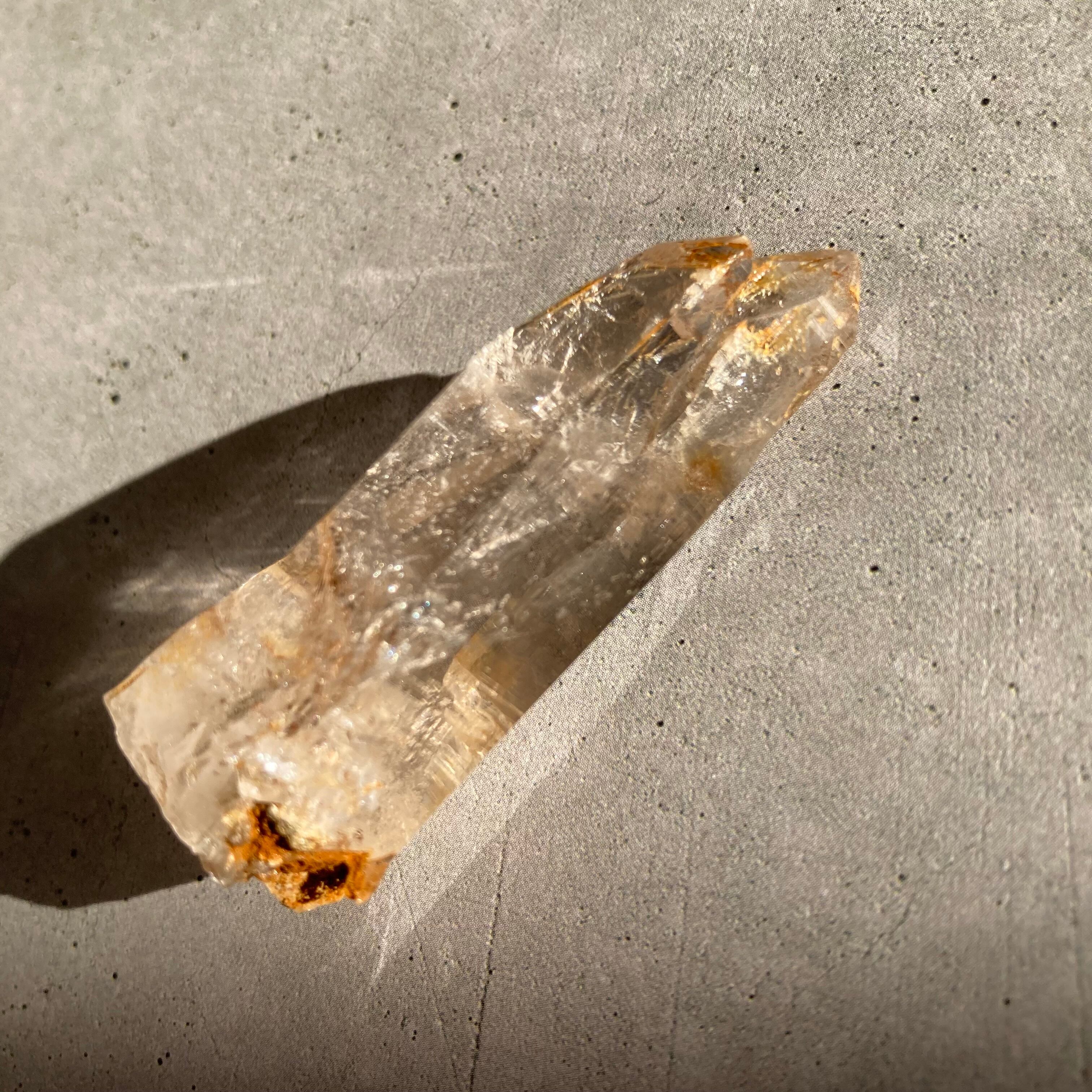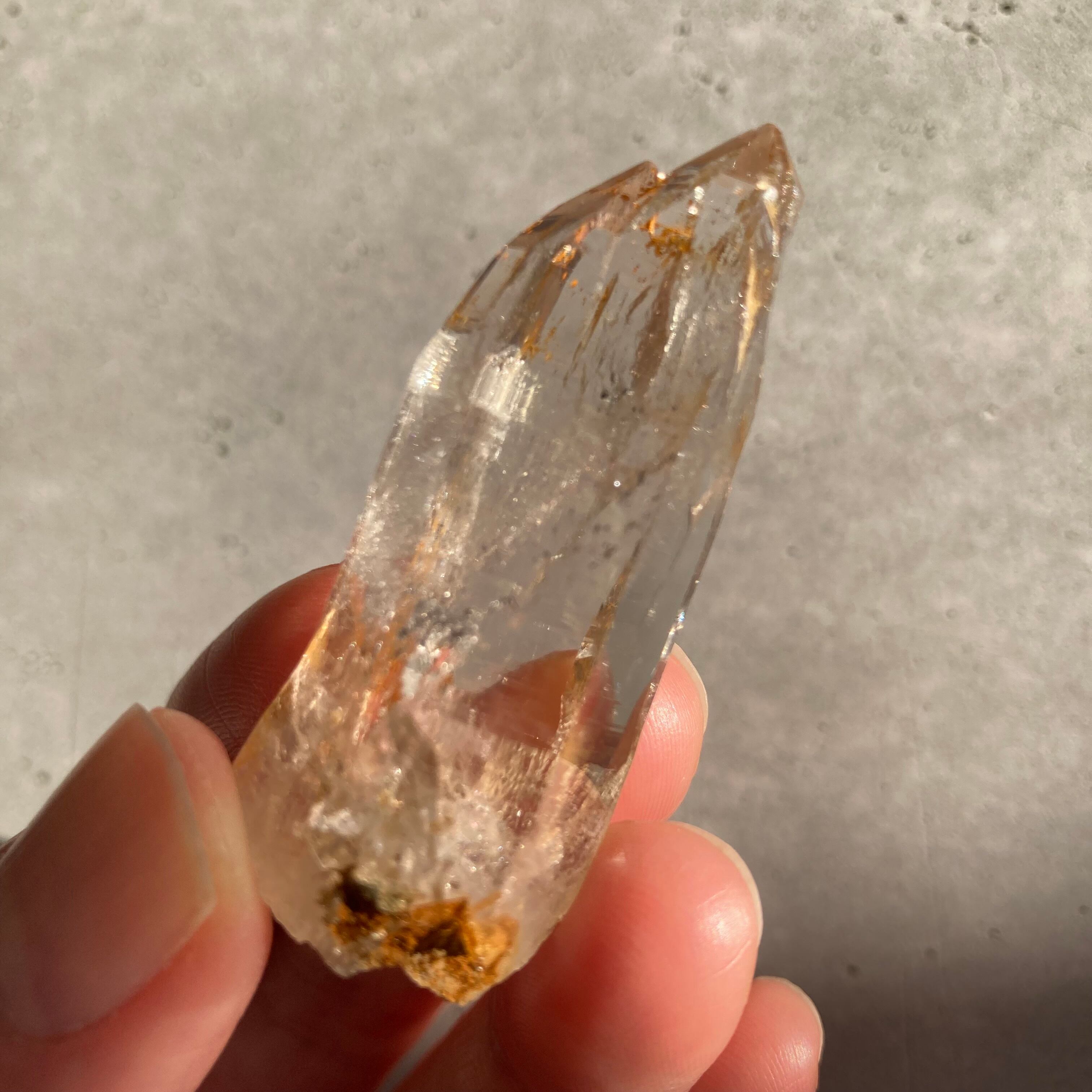 強い波動と美しさを兼ね備えた、希少価値の高いネパール・ガネーシュヒマール産の水晶ポイントを入荷しました。神聖なる水晶には、自己を見つめ、心を浄化する力があります。ガネーシュヒマールで産出されたこの水晶ポイントは自然な形状で、底部にはリモナイト(鉄分)が付着しています。サイズ感は小さいので持ち運びやすい一品です。標高5000mにもなるヒマラヤ山中での採掘は非常に厳しく、機械を持ち込めない採取がゆえに、流通量が少ない水晶ポイントです。存在感のある水晶をお求めのあなた様へおすすめです。
